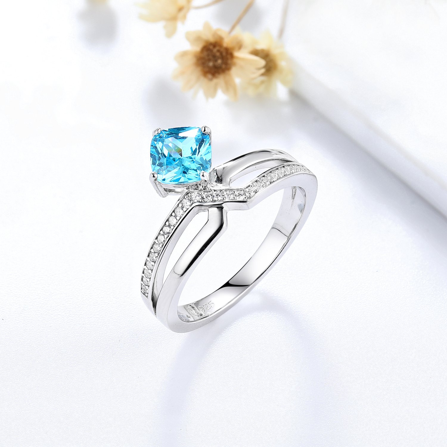 Stones information:white cz and aquablue cz