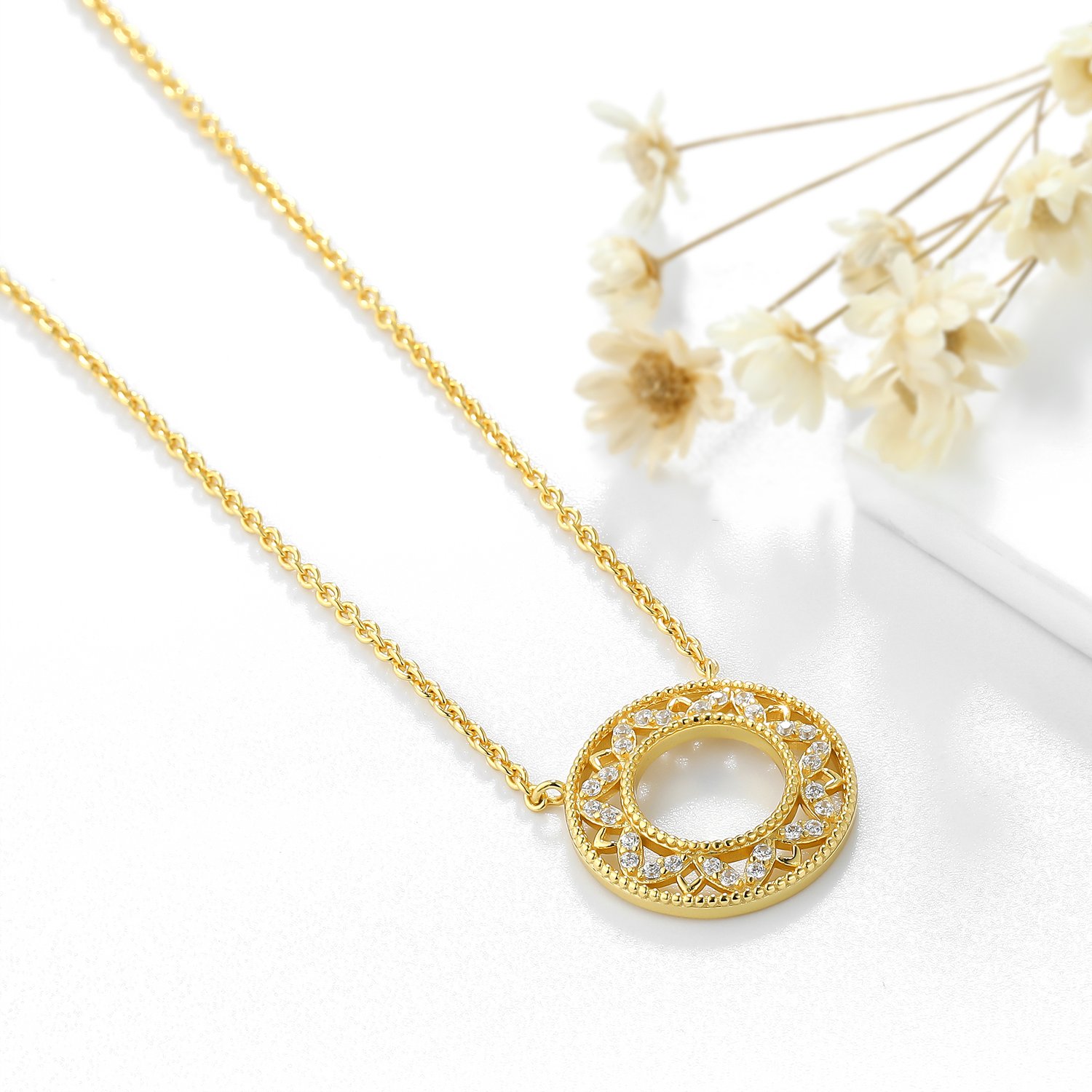 • Silver necklace,white cz,gold plating